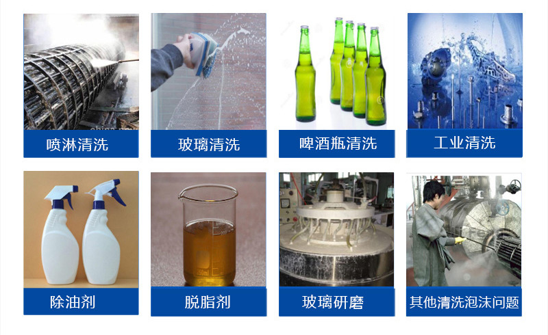 (3)水溶性好、高固含量、用量少、消泡快、抑泡長(zhǎng);